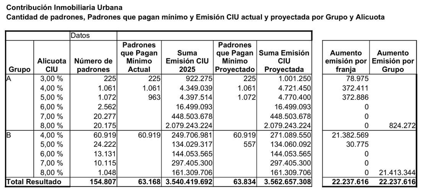 No acompañamos la totalidad del expediente porque los cambios propuestos en materia tributaria son regresivos e injustos. El aumento de los mínimos de la contribución inmobiliaria urbana y del nuevo adicional ambiental recae principalmente en los padrones de menor valor, afectando a vecinos de localidades con menor poder adquisitivo, en lugar de aplicar uno mayor a quienes más tienen.
